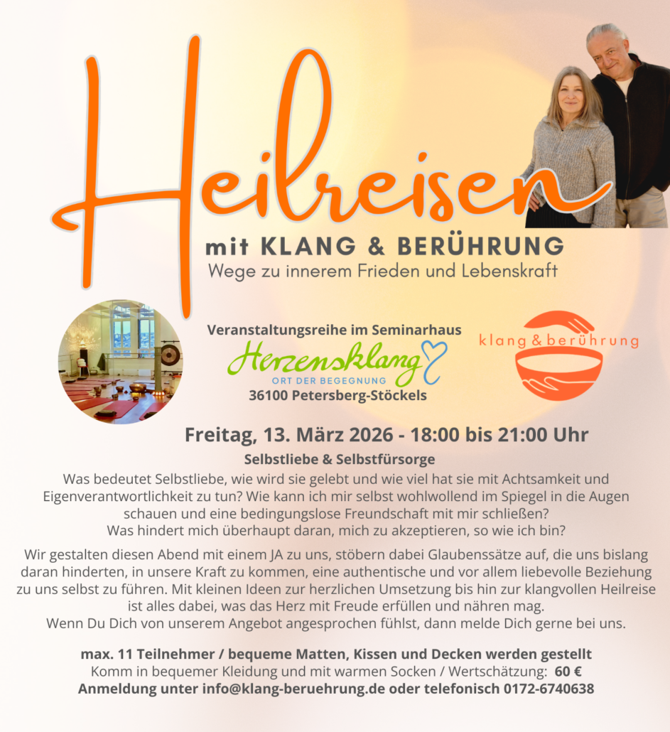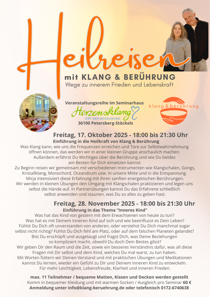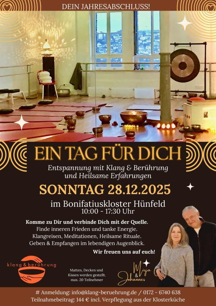 2,5 Stunden Persönliches KurzSeminar mit KlangEnergetik und energetischen Berührungen (mit Mirja & Johannes)